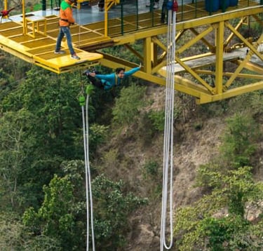 Welcome to India’s first and oldest Bungy site, located in the serene valley of Mohan Chatti, just a 30-minute drive from Laxman Jhula.